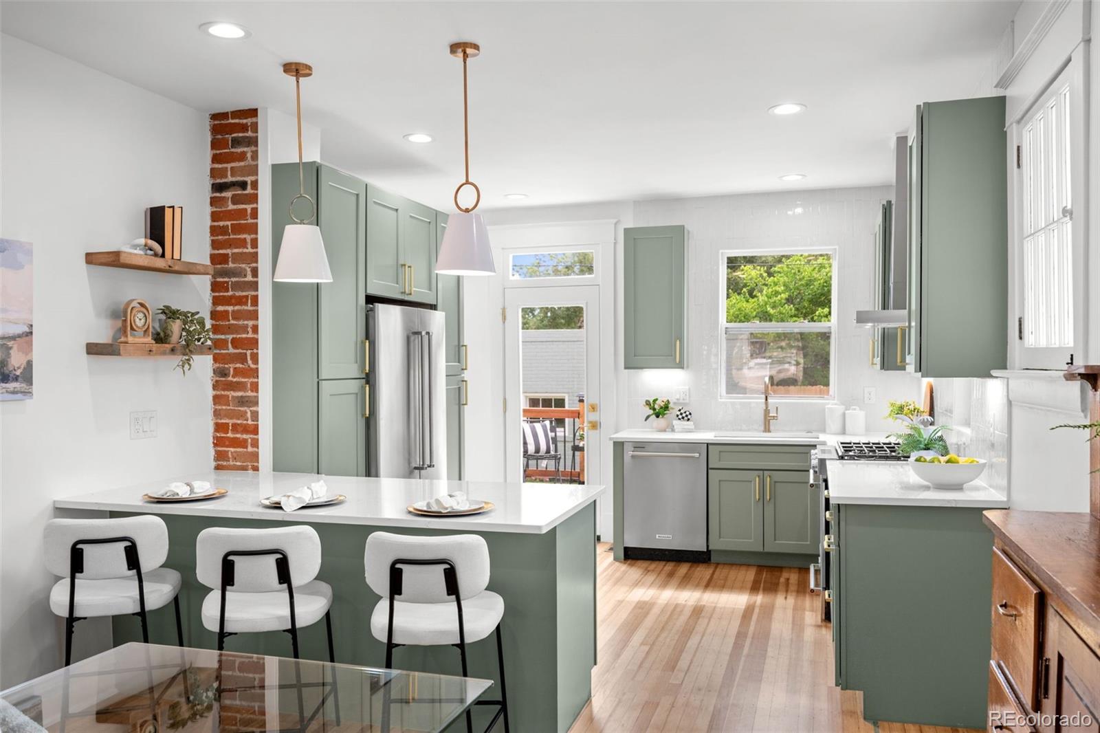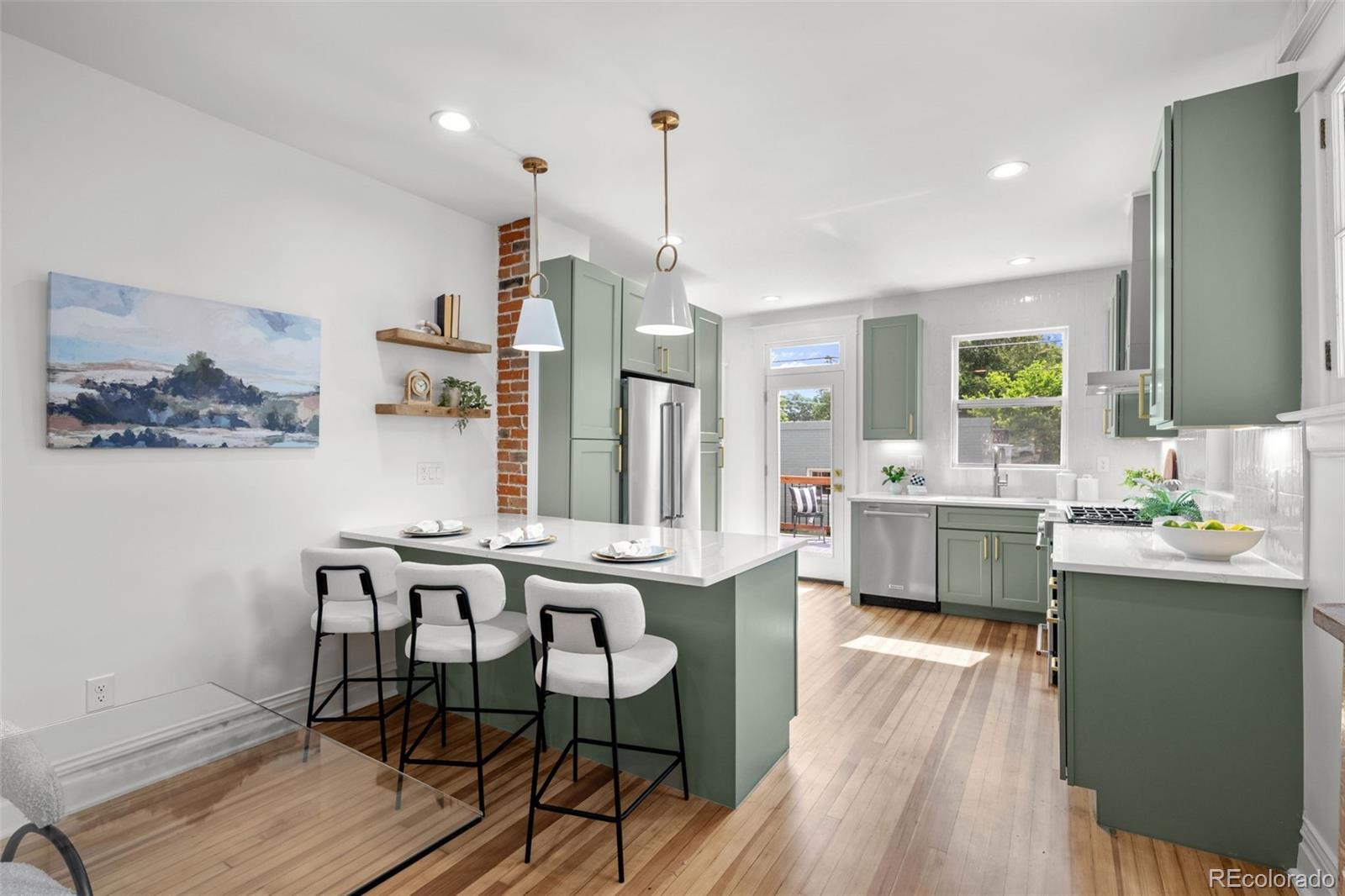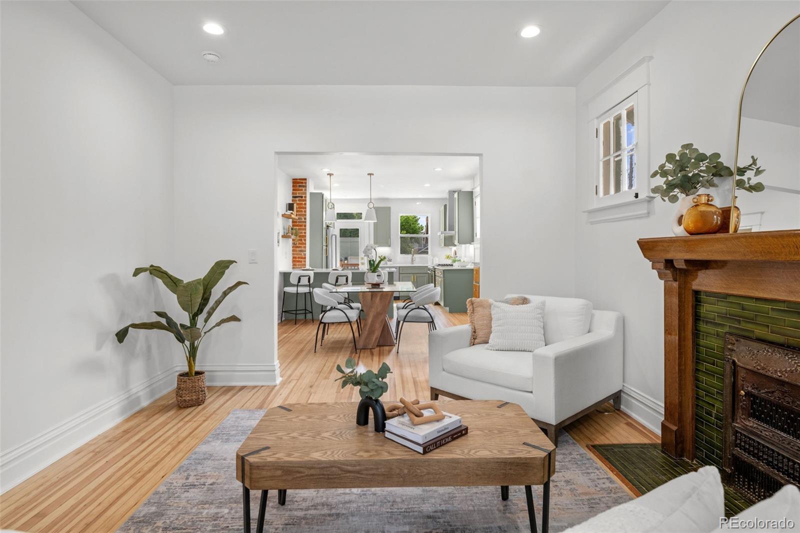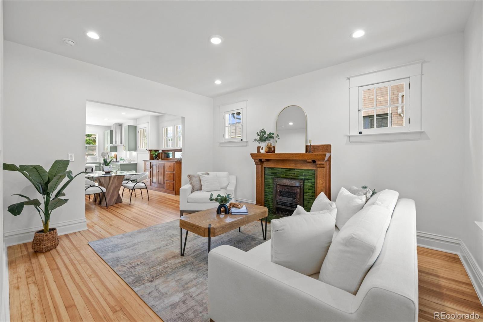 THIS ABSOLUTELY STUNNING, FULLY PERMITTED, CUSTOM REMODELED, 3 BEDROOM, 2 BATH, 1911 BRICK BUNGALOW IN CONGRESS PARK DOES NOT MISS A BEAT!!! No expense has been spared, every inch of this home is either brand new or has been lovingly restored! New exterior landscaping and a brand new front porch with a porch swing and new exterior paint, ideal for welcoming visits from your new neighbors! Upon entering, you are instantly greeted with an amazingly sun drenched open floor plan where you can see all the way through to the back yard! Before you go too far, don't miss the cute little cubby tucked behind the front door where you can leave your shoes and jackets! The living room has refinished original hardwood floors, the original wood trim and windows and a 1911 fireplace, all accentuated by new paint and lighting! A generous dining area boasts an original built in hutch, exposed brick, floating shelves and a breakfast bar with new quartz countertops open to the kitchen where you'll fall in love with the gorgeous cabinets, under cabinet lighting, KitchenAid S/S appliances, 5 burner gas range and drawer microwave! New windows, glass door and a sink overlooking the backyard! Original door handles bring you into the two bedrooms and the incredible, custom designed bathroom with a gorgeous vanity and jaw dropping tile! Completely new basement features a family room, 3rd bedroom with an egress window, luxurious bathroom with a custom glass shower door and a full size laundry room! Brand new tankless hot water heater, new furnace, A/C, plumbing, electrical and sewer line! Lush green grass, new sprinkler and drip system, beautiful new patio and railing! Rebuilt brick, side entry 2 car garage! AWESOME LOCATION AND HIGH WALK SCORE!! 3 blocks to 12th & Madison, 5 blocks to Culinary Dropout & Blanco at 9+CO with new Padel Court, 6 blocks to Trader Joe's, Snooze & more! Close to Congress Park, City Park, The Zoo & Museum! Easy access to 6th Ave, 8th Ave & Downtown!