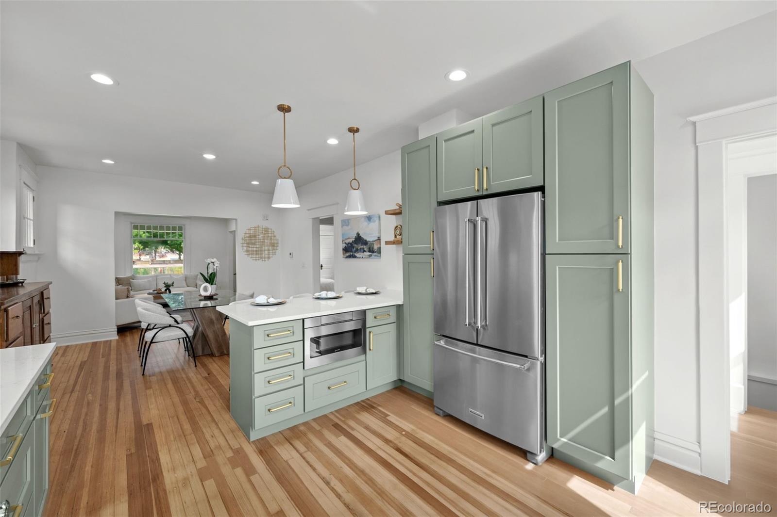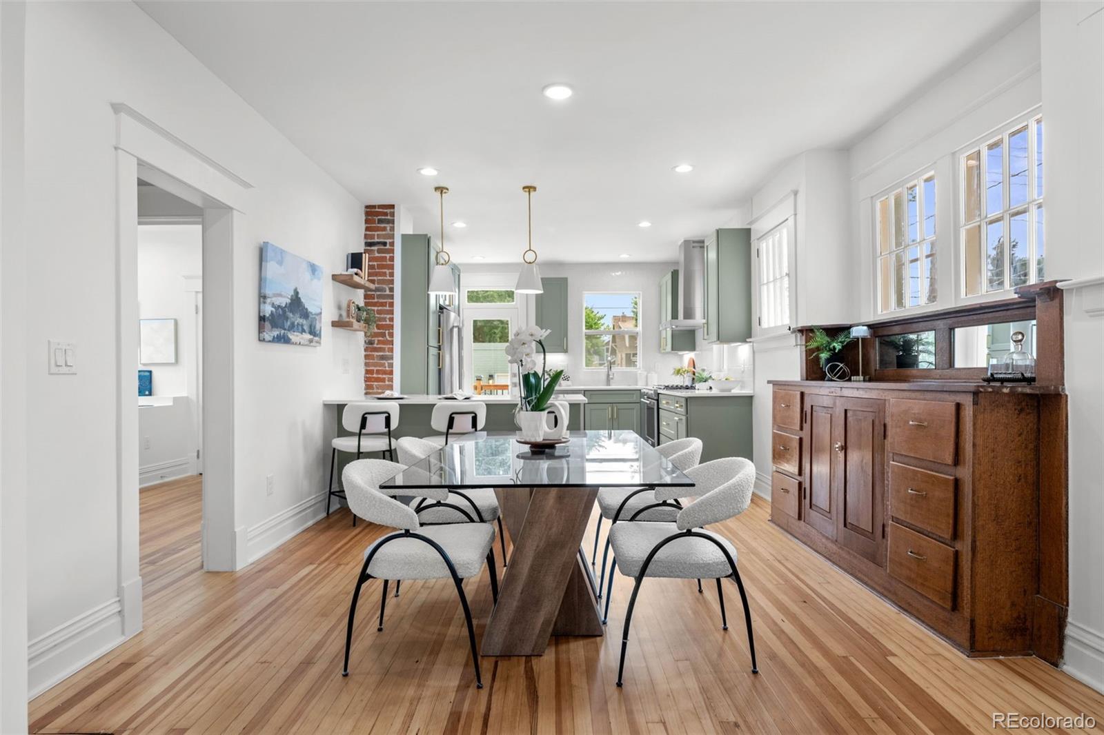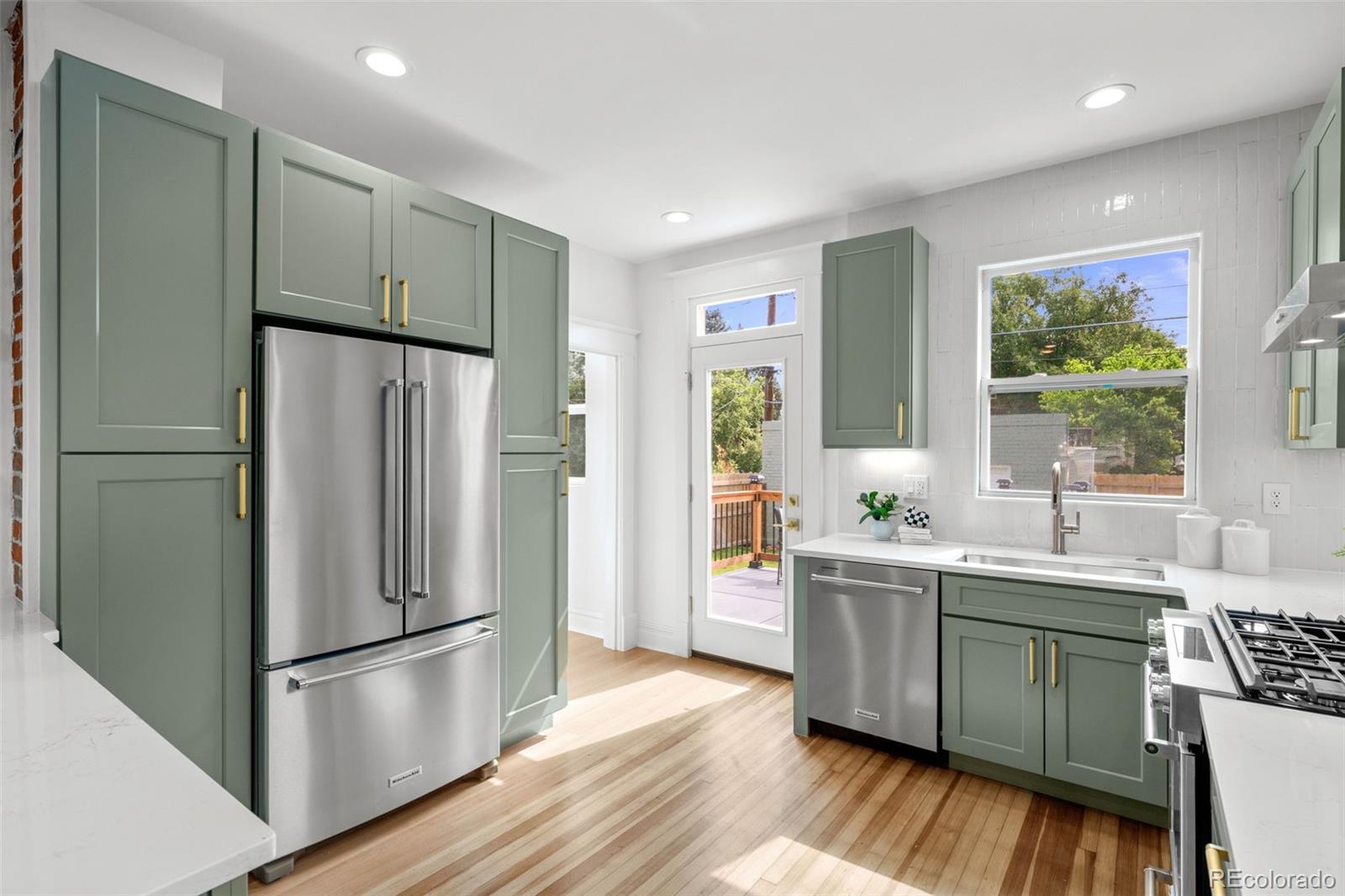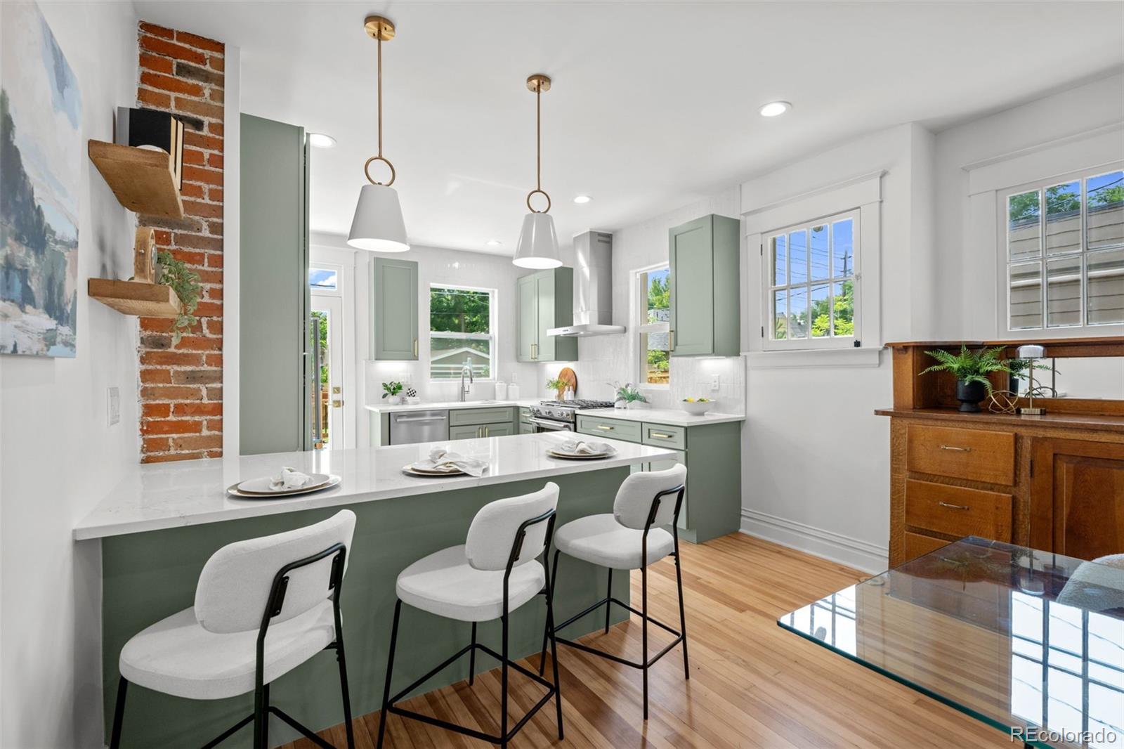 THIS ABSOLUTELY STUNNING, FULLY PERMITTED, CUSTOM REMODELED, 3 BEDROOM, 2 BATH, 1911 BRICK BUNGALOW IN CONGRESS PARK DOES NOT MISS A BEAT!!! No expense has been spared, every inch of this home is either brand new or has been lovingly restored! New exterior landscaping and a brand new front porch with a porch swing and new exterior paint, ideal for welcoming visits from your new neighbors! Upon entering, you are instantly greeted with an amazingly sun drenched open floor plan where you can see all the way through to the back yard! Before you go too far, don't miss the cute little cubby tucked behind the front door where you can leave your shoes and jackets! The living room has refinished original hardwood floors, the original wood trim and windows and a 1911 fireplace, all accentuated by new paint and lighting! A generous dining area boasts an original built in hutch, exposed brick, floating shelves and a breakfast bar with new quartz countertops open to the kitchen where you'll fall in love with the gorgeous cabinets, under cabinet lighting, KitchenAid S/S appliances, 5 burner gas range and drawer microwave! New windows, glass door and a sink overlooking the backyard! Original door handles bring you into the two bedrooms and the incredible, custom designed bathroom with a gorgeous vanity and jaw dropping tile! Completely new basement features a family room, 3rd bedroom with an egress window, luxurious bathroom with a custom glass shower door and a full size laundry room! Brand new tankless hot water heater, new furnace, A/C, plumbing, electrical and sewer line! Lush green grass, new sprinkler and drip system, beautiful new patio and railing! Rebuilt brick, side entry 2 car garage! AWESOME LOCATION AND HIGH WALK SCORE!! 3 blocks to 12th & Madison, 5 blocks to Culinary Dropout & Blanco at 9+CO with new Padel Court, 6 blocks to Trader Joe's, Snooze & more! Close to Congress Park, City Park, The Zoo & Museum! Easy access to 6th Ave, 8th Ave & Downtown!