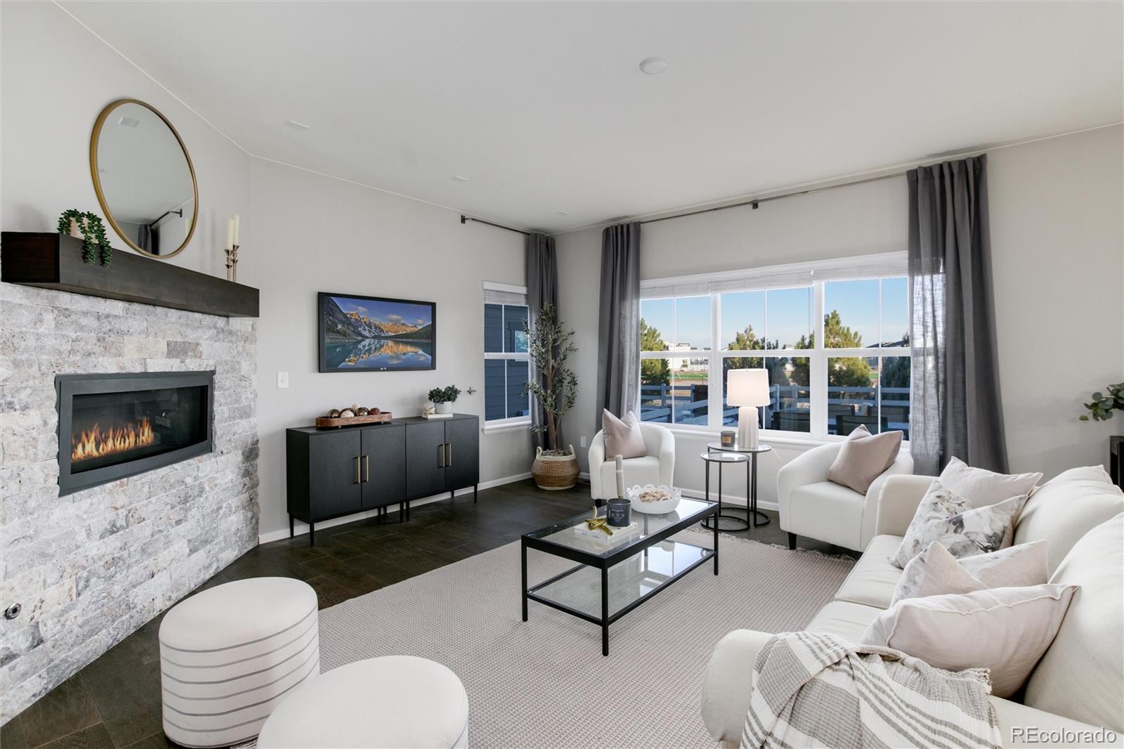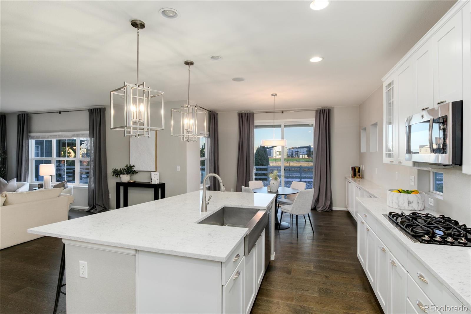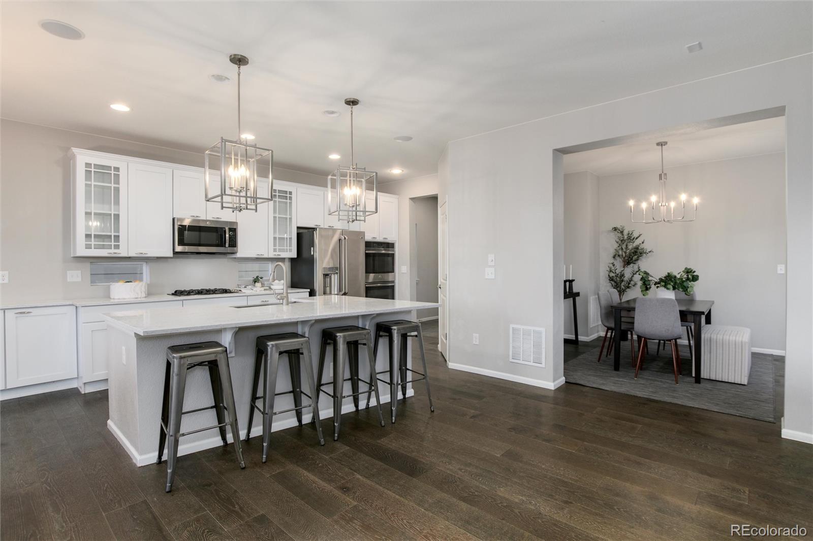 Introducing a rare gem in Anthem Highlands! This 6-bed, 5-bath home with an open floor plan is perfect for entertaining, featuring 2 patios and a large yard with no homes behind it. The gourmet kitchen boasts updated lighting, stainless steel appliances, double oven, gas cooktop, farmhouse sink, quartz countertops, and extended cabinets. The first floor includes a den, powder room, and dining room. Upstairs, discover 4 bedrooms, including an updated primary suite with a walk-in closet. Three additional bedrooms, one with an attached bathroom, complete the upper level. The finished basement offers a wet bar, 2 bedrooms, and a full bathroom. Enjoy the convenience of an updated HVAC system with a split unit and an attached 2-car garage. Anthem Highlands community provides a 32,000 sq ft Rec/Fitness center, 22 parks, 2 pools, 48 miles of trails, tennis/basketball courts, and vibrant neighborhood events. Close proximity to excellent schools enhances the appeal of this exceptional home.