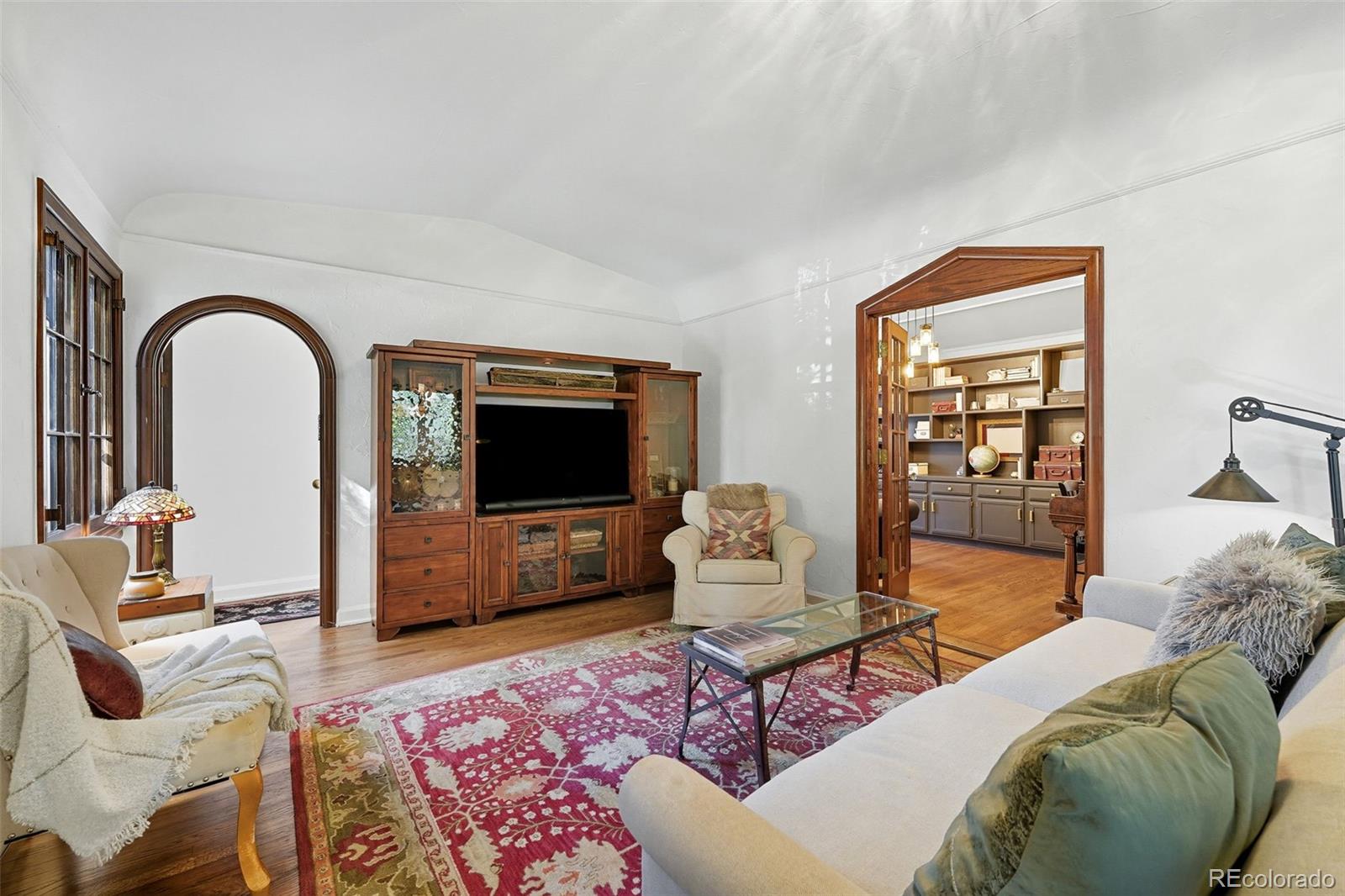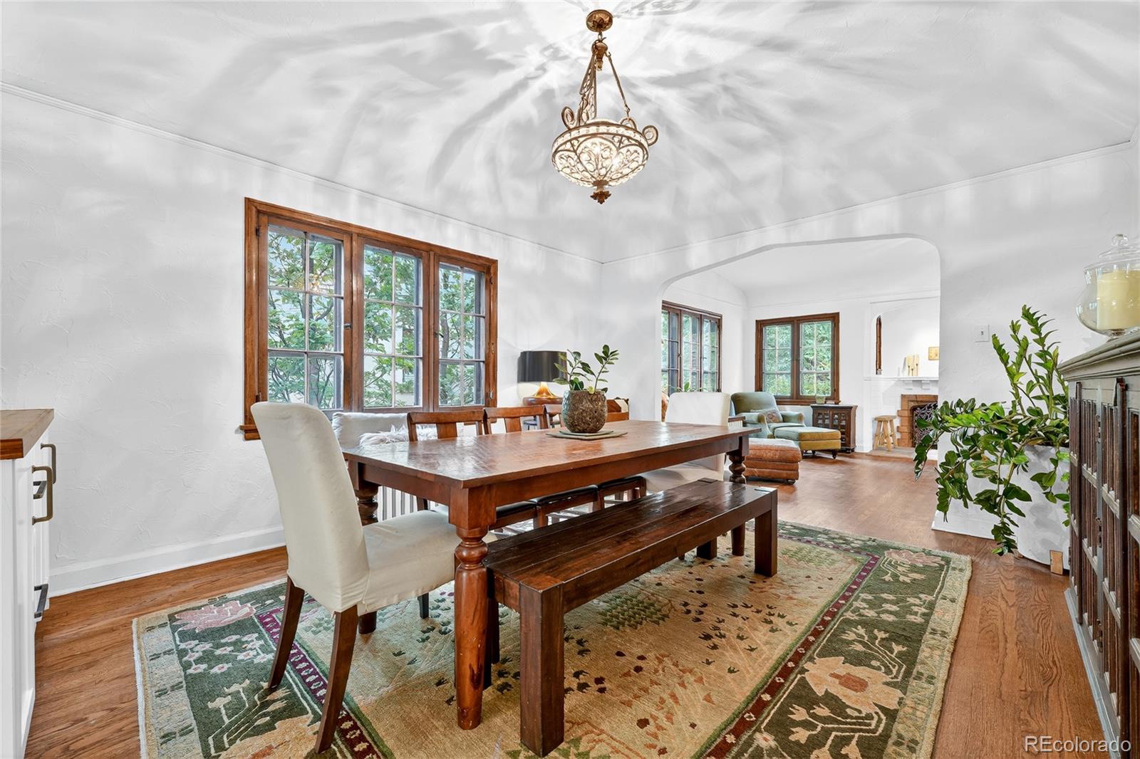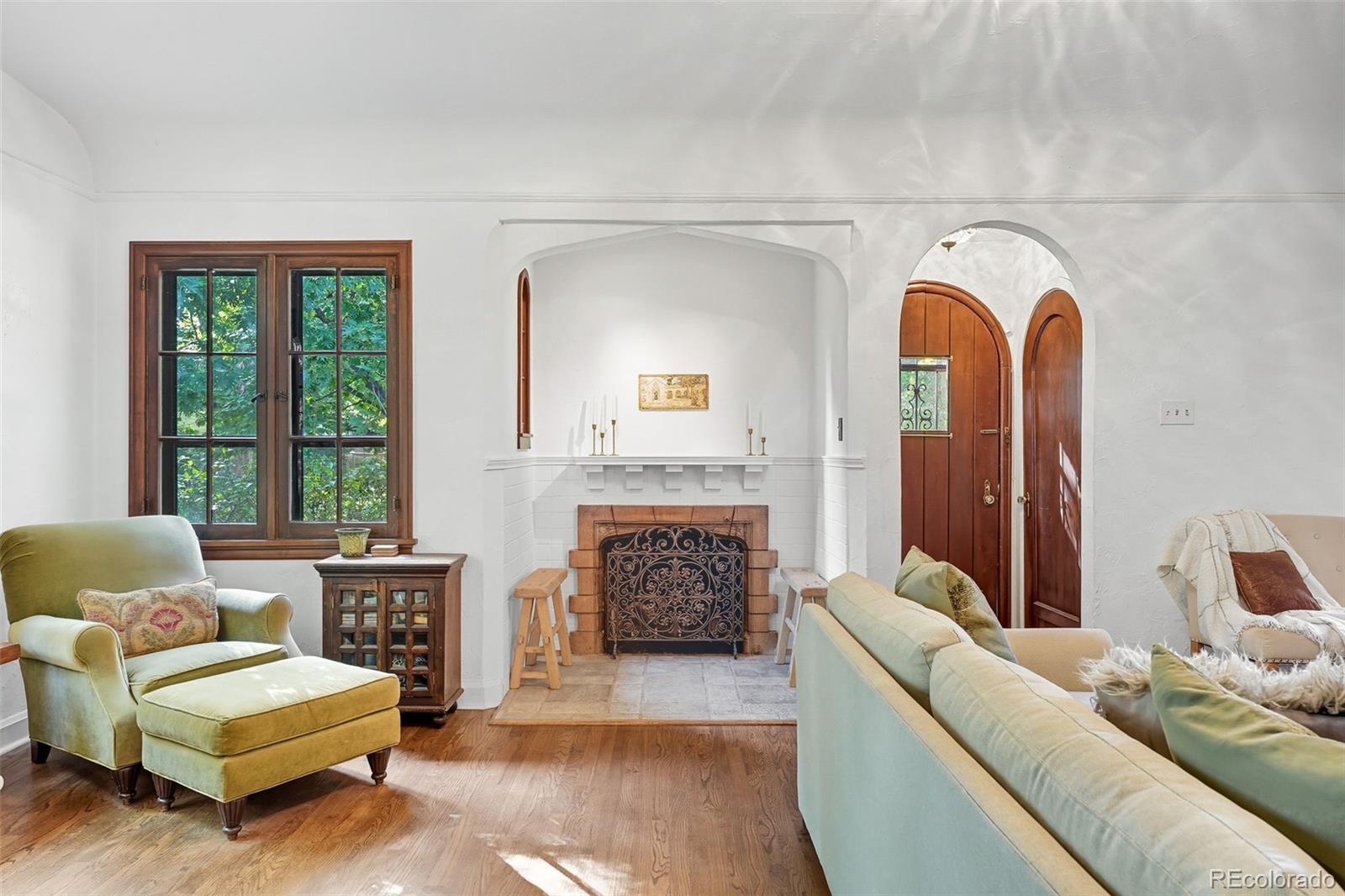 Enter into a lifestyle of refined elegance and sustainable luxury in this exceptional Tudor nestled in the heart of South Park Hill. This home has been meticulously cared for and thoughtfully redesigned to offer the perfect marriage of old world character with modern functionality & design. Each spacious room flows beautifully to the next, offering expansive windows, soaring ceilings, meticulous woodwork, period details, and elegant hardwood floors that enhance the open, airy ambiance. The kitchen is the true heart of the home. Recently renovated to perfection in 2023, you'll adore the custom walnut cabinetry, handmade zellige tile backsplash, 6-burner range with hood, dbl oven, marble countertops, farmhouse sink, kitchen island for additional storage, and a stunning eat-in nook complete with seating bench and new windows overlooking the lush garden. The uniquely spacious primary suite is on the main floor offering coved ceiling, stunning walk-in closet with perfect built-ins, and calming views of the manicured yard. The private bathroom is your zen oasis offering heated floors, steam shower, marble flooring, designer tile, dual vanity, and beautiful fixtures. Rounding out the main level is a spacious secondary bedroom, which doubles as a home office complete with french doors and built-ins and a powder room for guests that is dripping in style! The basement is finished to perfection, offering two more spacious bedrooms, hardwood floors throughout, lovely Jack n Jill bath, and two additional rec rooms to use as you wish as guests quarters, media room, game room and more. The whimsical outdoor space is a sight to behold with its lush landscaping, gorgeous concrete paver patio, cozy fireplace for entertaining on chilly evenings, pergola-covered outdoor living space, and mature trees offering ultimate privacy, and plenty of space to run and play. The location cannot be beat, just blocks to Bistro Vendome, Lucina Eatery & Bar, Cake Crumbs, Scoops, and so much more.