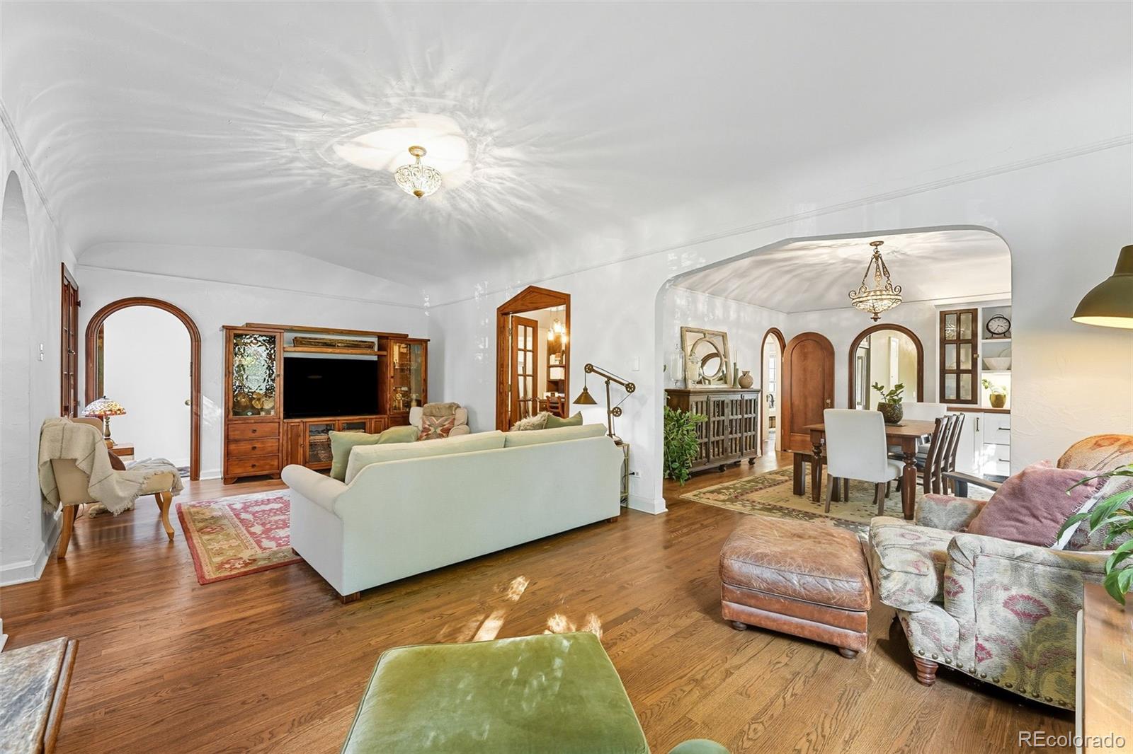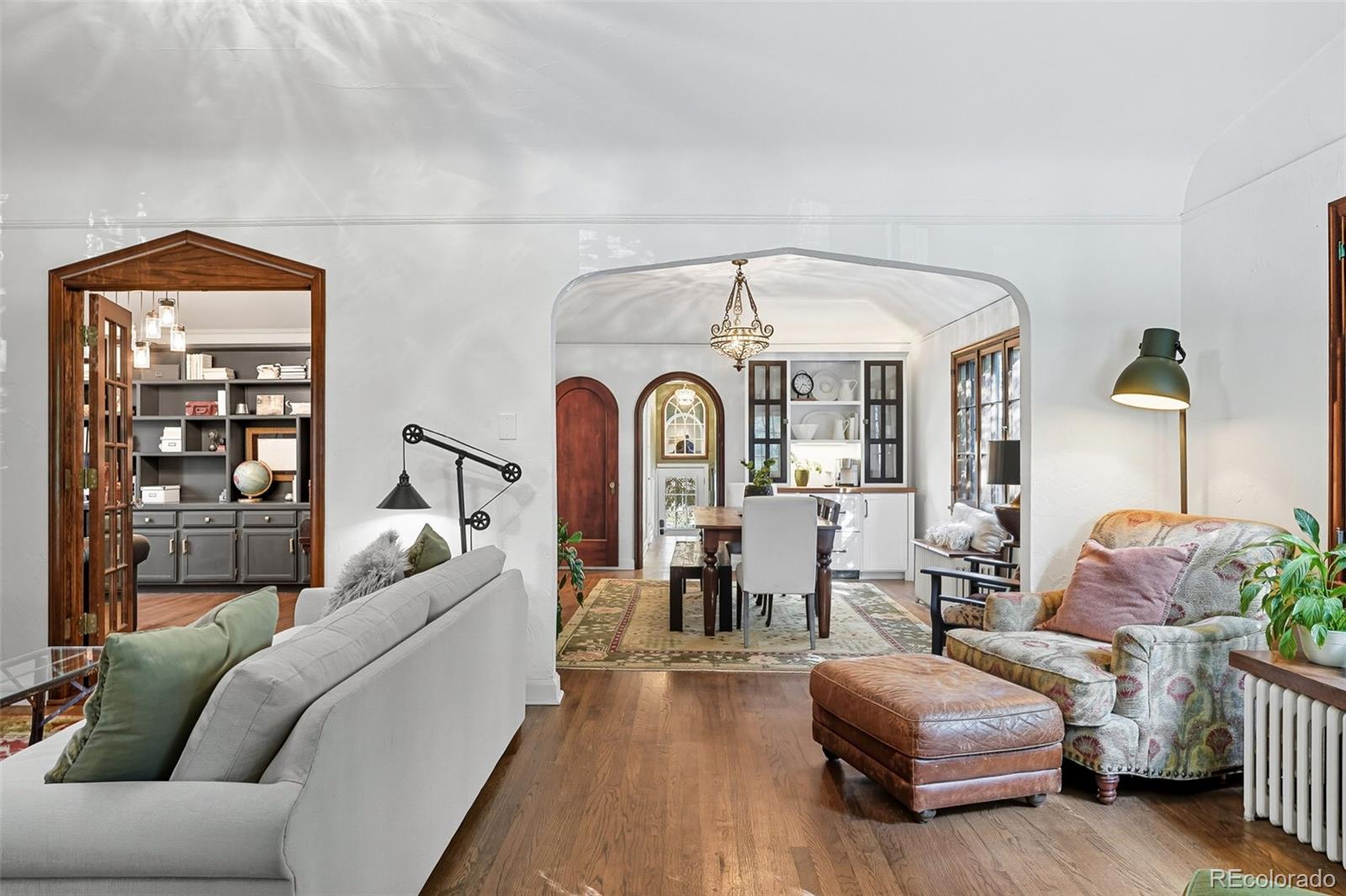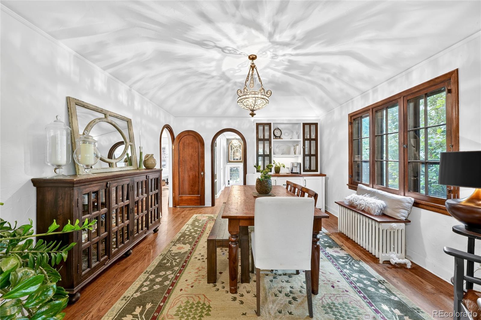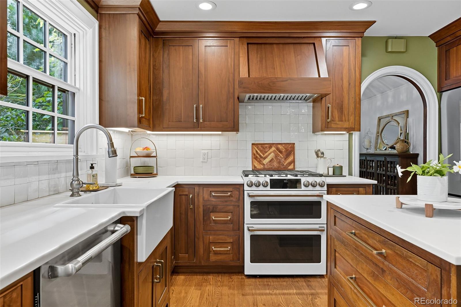 Enter into a lifestyle of refined elegance and sustainable luxury in this exceptional Tudor nestled in the heart of South Park Hill. This home has been meticulously cared for and thoughtfully redesigned to offer the perfect marriage of old world character with modern functionality & design. Each spacious room flows beautifully to the next, offering expansive windows, soaring ceilings, meticulous woodwork, period details, and elegant hardwood floors that enhance the open, airy ambiance. The kitchen is the true heart of the home. Recently renovated to perfection in 2023, you'll adore the custom walnut cabinetry, handmade zellige tile backsplash, 6-burner range with hood, dbl oven, marble countertops, farmhouse sink, kitchen island for additional storage, and a stunning eat-in nook complete with seating bench and new windows overlooking the lush garden. The uniquely spacious primary suite is on the main floor offering coved ceiling, stunning walk-in closet with perfect built-ins, and calming views of the manicured yard. The private bathroom is your zen oasis offering heated floors, steam shower, marble flooring, designer tile, dual vanity, and beautiful fixtures. Rounding out the main level is a spacious secondary bedroom, which doubles as a home office complete with french doors and built-ins and a powder room for guests that is dripping in style! The basement is finished to perfection, offering two more spacious bedrooms, hardwood floors throughout, lovely Jack n Jill bath, and two additional rec rooms to use as you wish as guests quarters, media room, game room and more. The whimsical outdoor space is a sight to behold with its lush landscaping, gorgeous concrete paver patio, cozy fireplace for entertaining on chilly evenings, pergola-covered outdoor living space, and mature trees offering ultimate privacy, and plenty of space to run and play. The location cannot be beat, just blocks to Bistro Vendome, Lucina Eatery & Bar, Cake Crumbs, Scoops, and so much more.