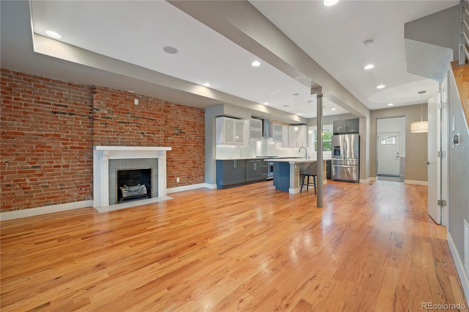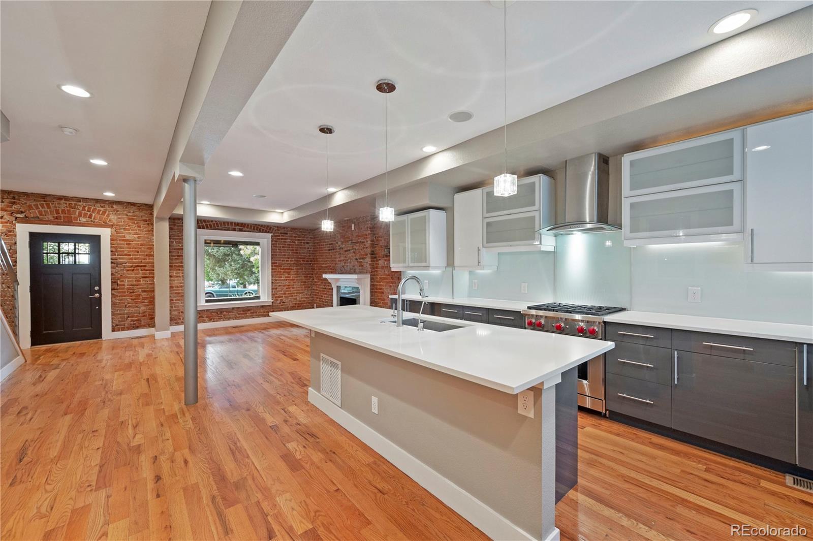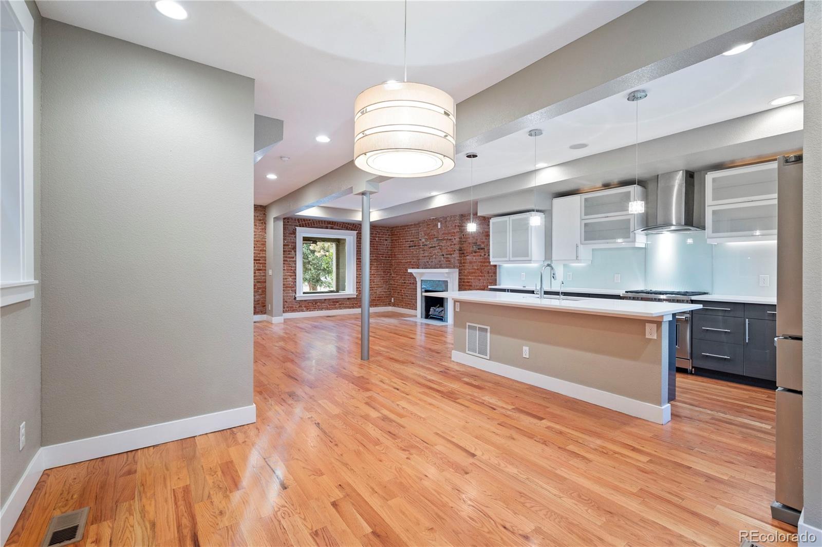 Welcome to this enchanting turn-of-the-century updated home in Whittier, a two-story treasure that masterfully blends vintage charm with contemporary elegance. The phenomenal main-level open layout showcases stunning hardwood floors, setting the stage as you step through the front door into a spacious kitchen and dining area. The well designed kitchen features a gas Wolf Range and generous cabinet storage. The living space is adorned with a decorative fireplace and exposed brick walls, creating a vibrant and inviting ambiance throughout the home. Upstairs, the primary bedroom boasts two west-facing windows offering breathtaking city and mountain views. The attached bathroom is gorgeous with an oversized dual waterfall shower. Two additional bedrooms and an updated bathroom complete the second level. The main level discreetly houses the laundry area, and there is a bonus room with a large window in the finished basement. The private backyard is perfect for gardening and BBQs, complemented by a newer two-car garage for easy parking and extra storage. Additional amenities include central A/C, a cozy covered front porch with a built-in outdoor heater, hard-wired sound system on main level, and fully paid-off solar panels. Nestled in a highly desirable Denver neighborhood, this magnificent gem is close to City Park, the newly renovated City Park Golf Course, the Denver Zoo, and Downtown, offering easy access to all the best Denver has to offer. Don't miss this rare opportunity to own a fantastic home in the heart of Denver. Make it yours today!