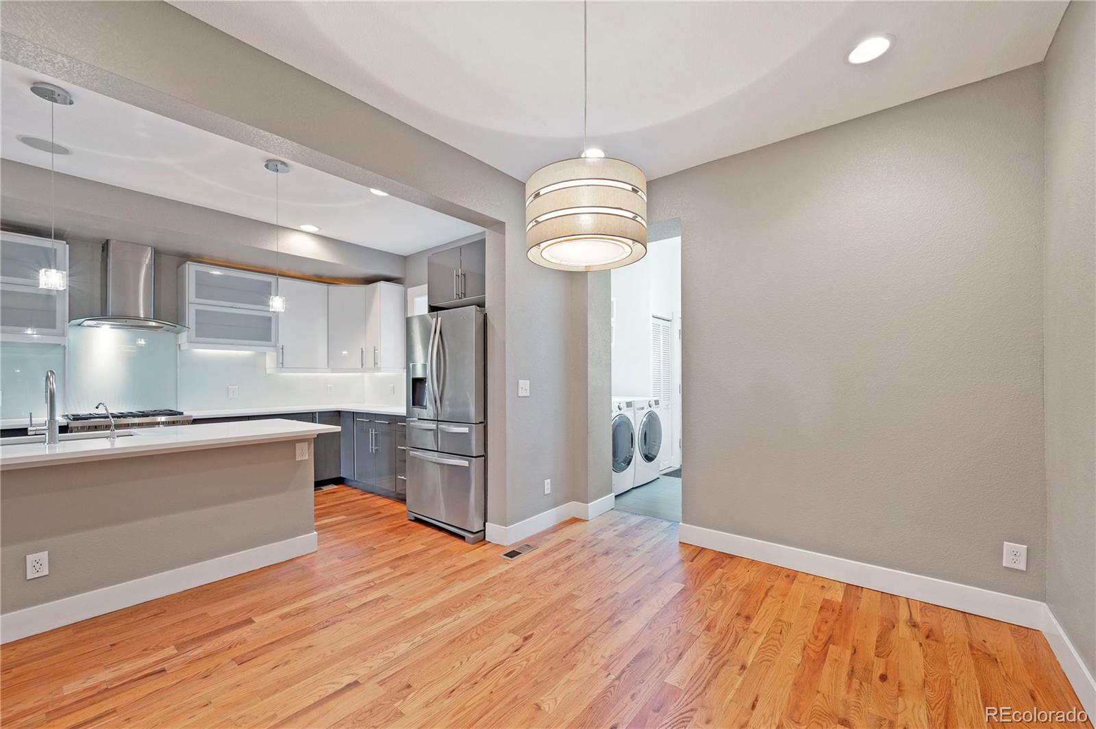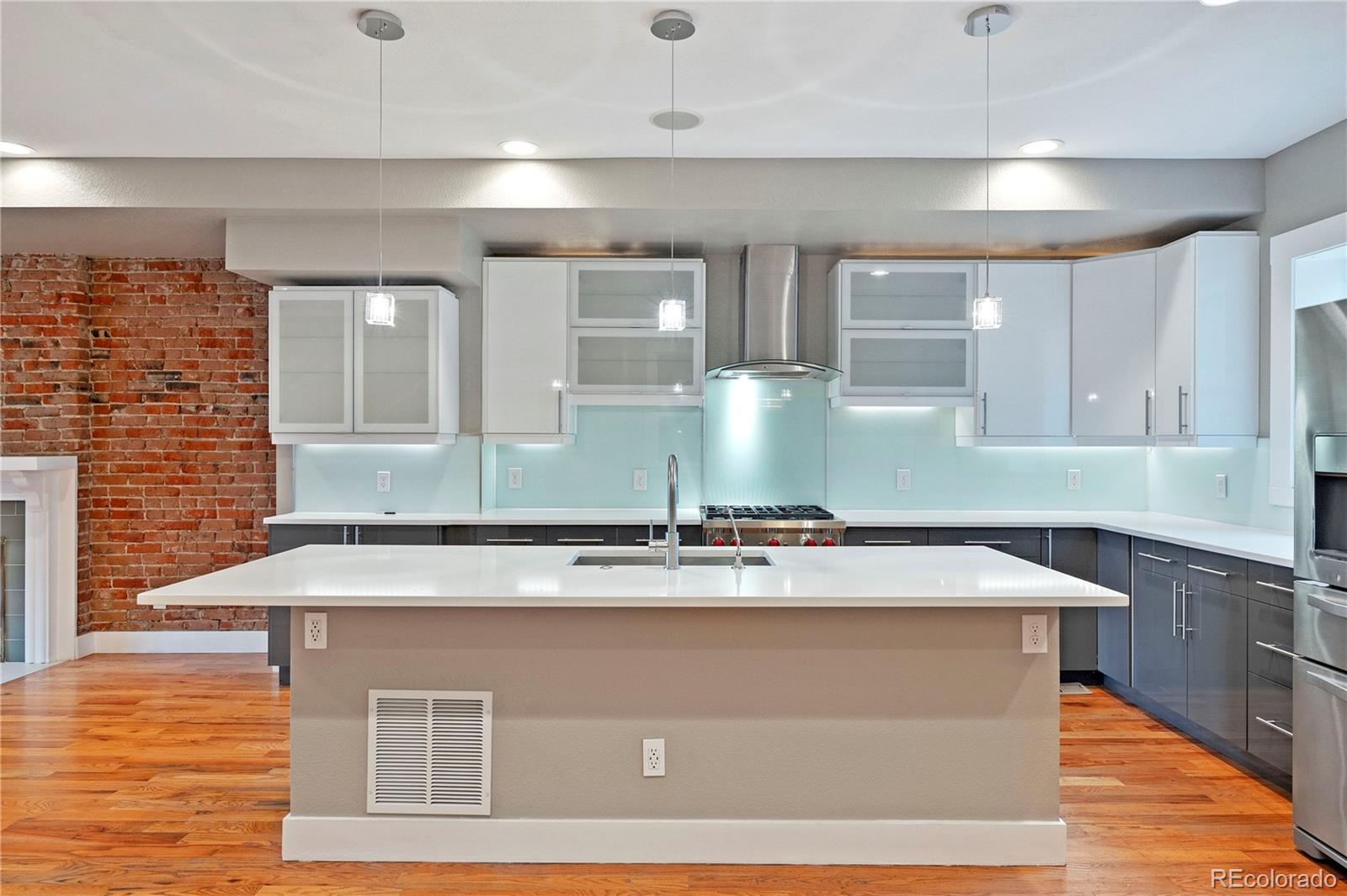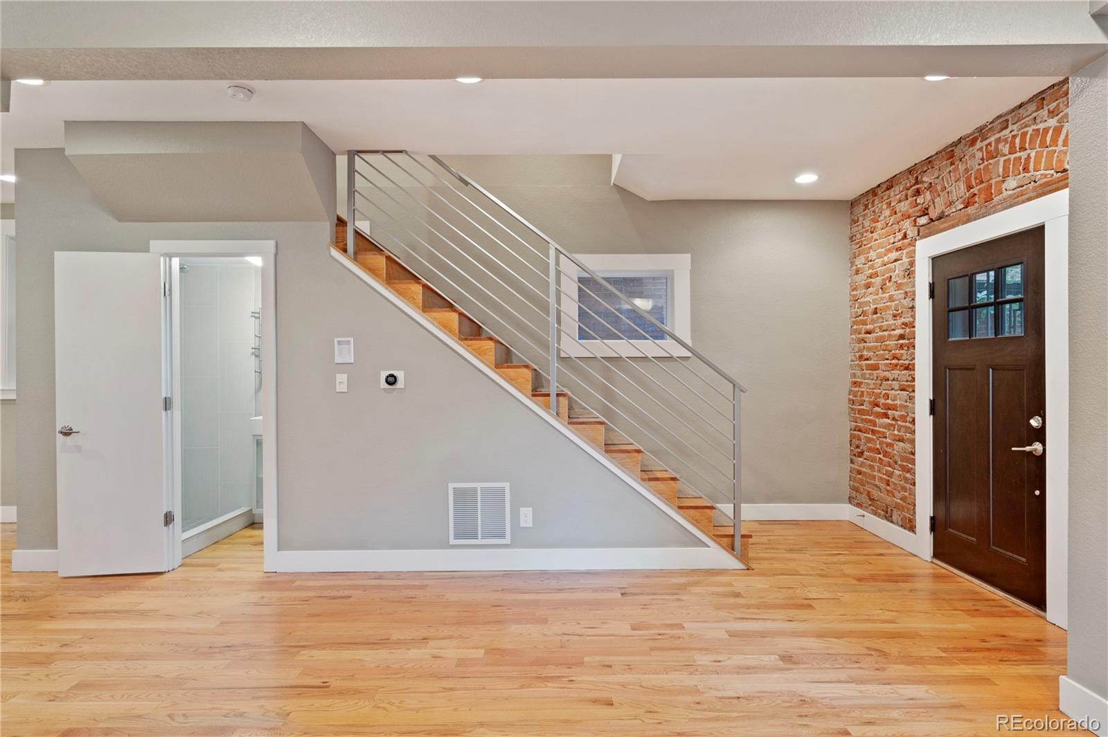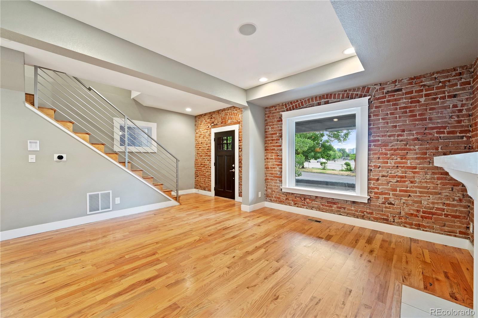 Welcome to this enchanting turn-of-the-century updated home in Whittier, a two-story treasure that masterfully blends vintage charm with contemporary elegance. The phenomenal main-level open layout showcases stunning hardwood floors, setting the stage as you step through the front door into a spacious kitchen and dining area. The well designed kitchen features a gas Wolf Range and generous cabinet storage. The living space is adorned with a decorative fireplace and exposed brick walls, creating a vibrant and inviting ambiance throughout the home. Upstairs, the primary bedroom boasts two west-facing windows offering breathtaking city and mountain views. The attached bathroom is gorgeous with an oversized dual waterfall shower. Two additional bedrooms and an updated bathroom complete the second level. The main level discreetly houses the laundry area, and there is a bonus room with a large window in the finished basement. The private backyard is perfect for gardening and BBQs, complemented by a newer two-car garage for easy parking and extra storage. Additional amenities include central A/C, a cozy covered front porch with a built-in outdoor heater, hard-wired sound system on main level, and fully paid-off solar panels. Nestled in a highly desirable Denver neighborhood, this magnificent gem is close to City Park, the newly renovated City Park Golf Course, the Denver Zoo, and Downtown, offering easy access to all the best Denver has to offer. Don't miss this rare opportunity to own a fantastic home in the heart of Denver. Make it yours today!