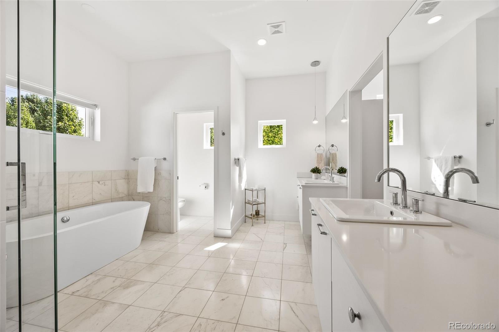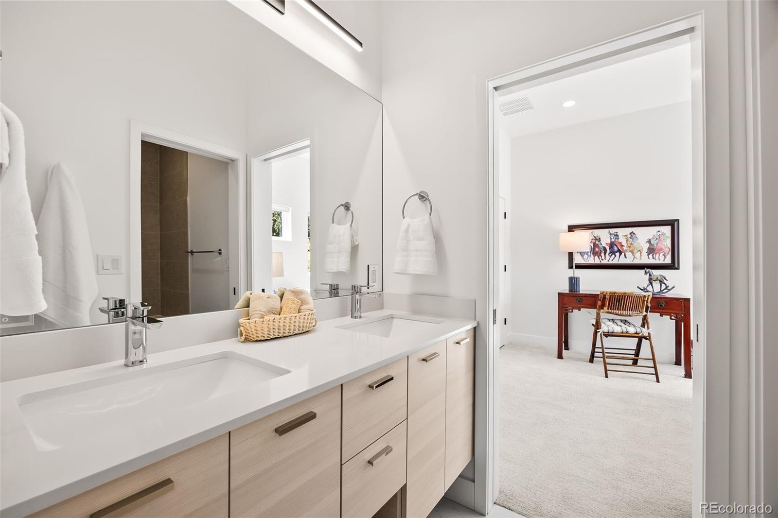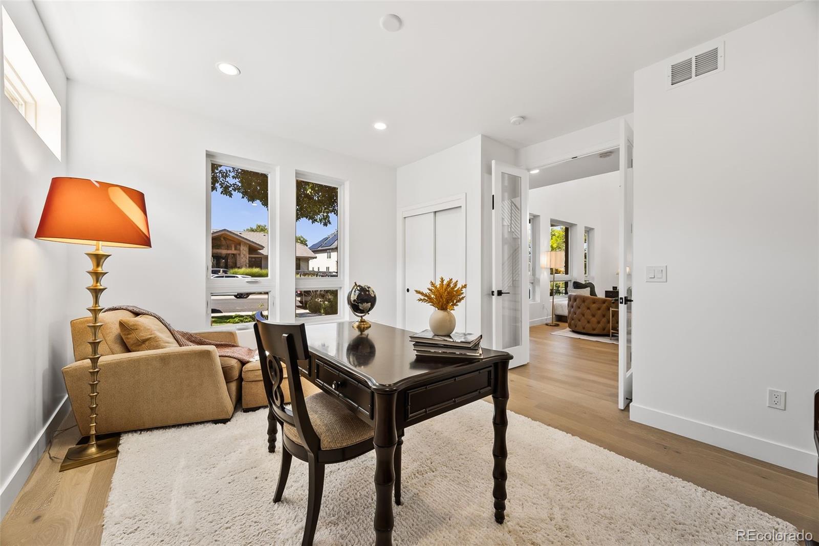 Situated on one of the most coveted blocks in University Hills, www.3320SBirch.com offers a rare combination of luxury, location, and lifestyle. Nestled on a quiet, tree-lined street with no through traffic and just two blocks from beloved Eisenhower Park, this thoughtfully designed 2020-built home features soaring ceilings, abundant natural light, and a flowing open-concept layout perfect for modern living. The main level impresses with a grand living room anchored by a sleek gas fireplace, a formal sitting area, dedicated home office, and a chef's kitchen complete with a center island, professional-grade appliances, quartz countertops, custom cabinetry, and a walk-in pantry. Expansive sliding glass doors lead to a covered outdoor living space and beautifully landscaped yard--ideal for year-round entertaining. Main floor is complete with the oversized mudroom and half bath area. Upstairs, the serene primary suite boasts a spa-worthy bath with freestanding tub, oversized shower, dual vanities, and a spacious walk-in closet. Two additional bedrooms share a Jack-and-Jill bath, and the oversized laundry room adds convenience. The fully finished lower level with high ceilings offers a generous rec room with wet bar, two conforming bedrooms / or gym area, a full bath, and abundant storage. Conveniently located within blocks to Eisenhower Park and Recreation Center, Highline Canal Trail, Bradley International School (National Blue Ribbon) & Wellshire Golf Course. Minutes to I-25, Bible Park & Denver's best amenities. This is a beautiful home.