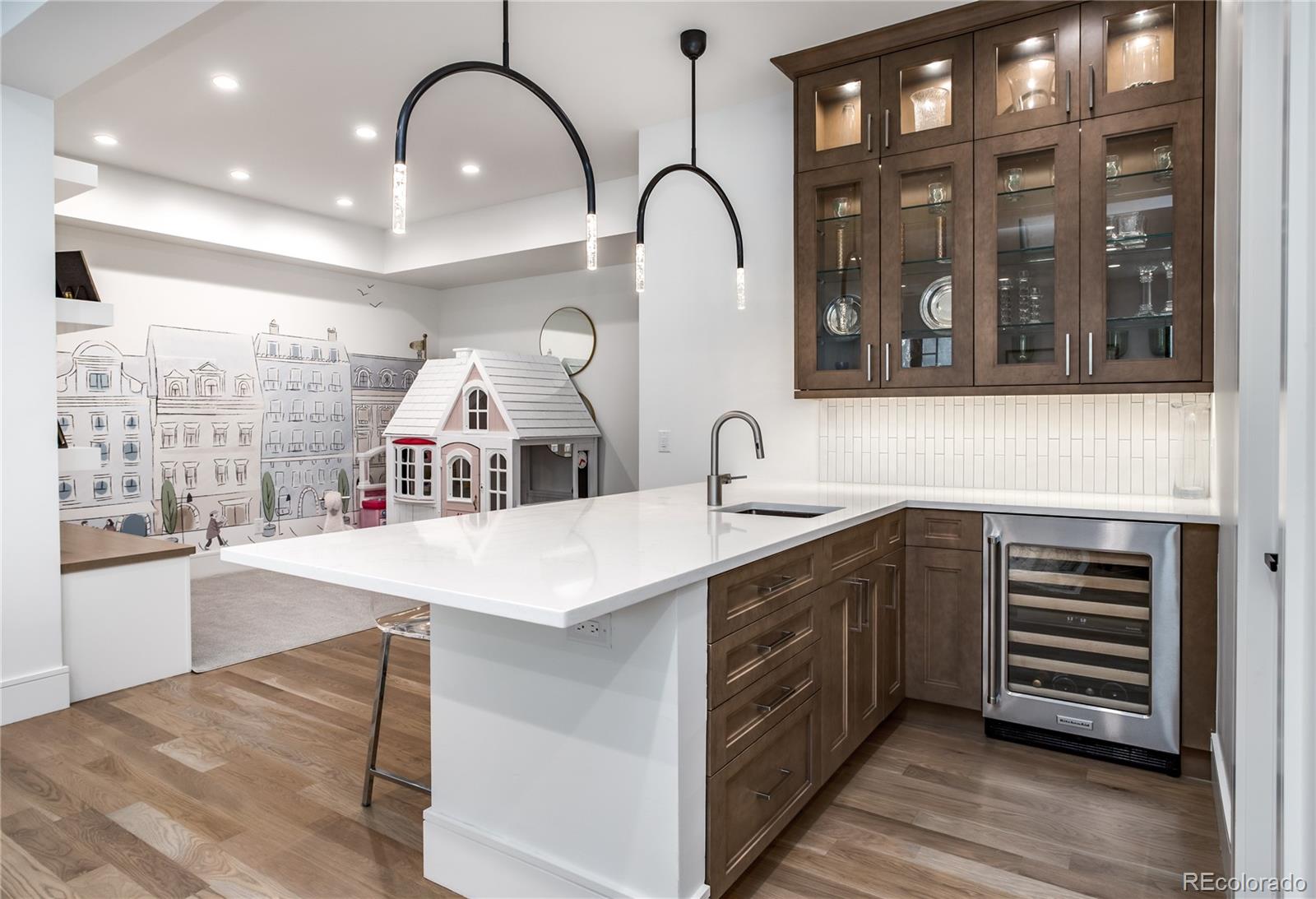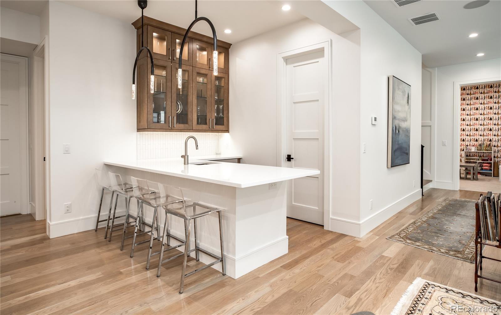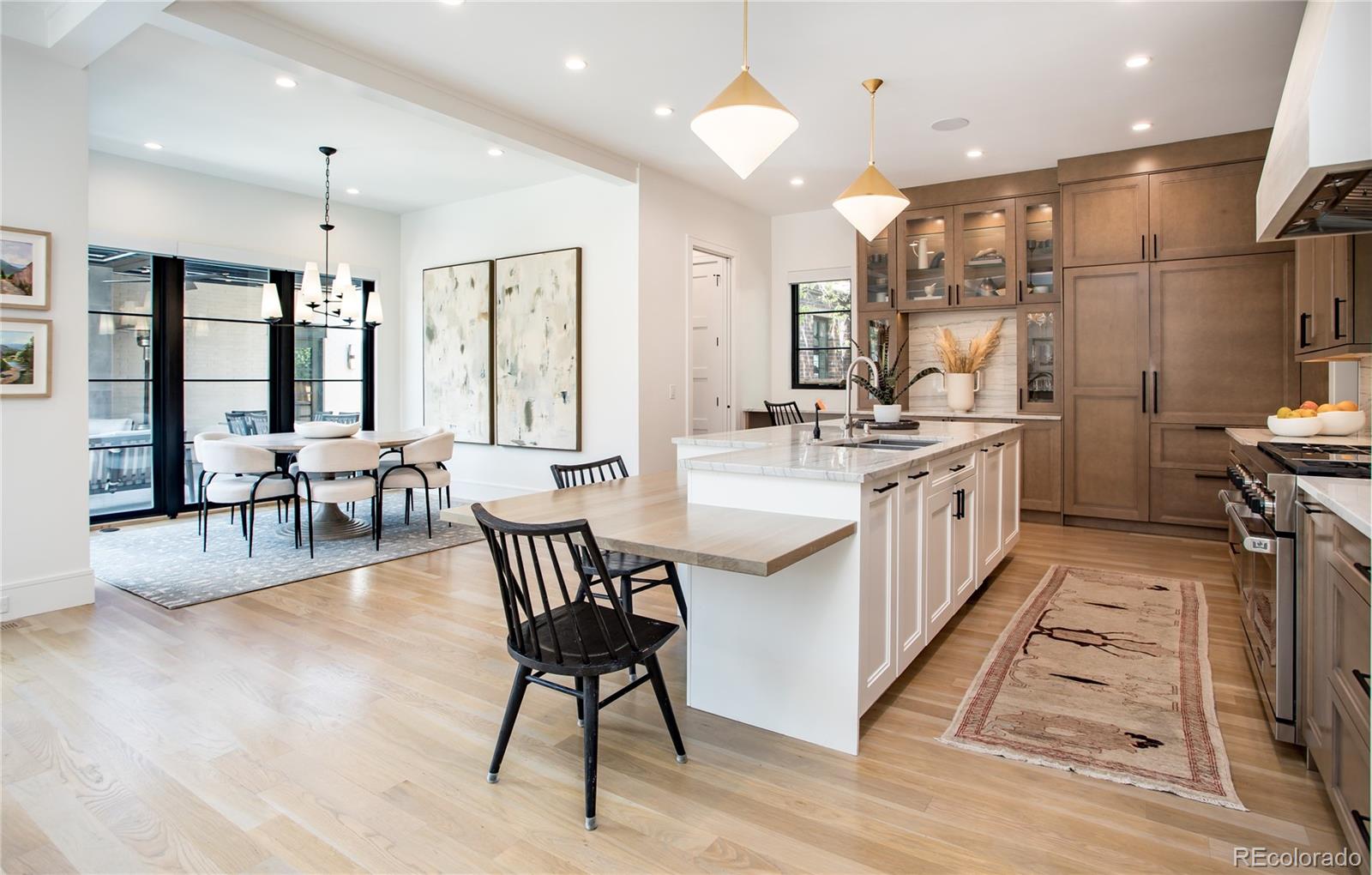 Timeless architecture and intricate details can be seen throughout this residence, unparalleled in its use of the finest materials & exquisite craftsmanship. Custom-built by Larsen Homes & designed by Studio Thomas, the open floorplan showcases high ceilings, 8-ft doors & large windows, allowing natural light to flood the interior. Beautifully outfitted with elegant crown molding, designer wallpaper, automatic up/down window shades & white oak floors. Main level study is highlighted by a built-in sofa, & expansive great room includes beamed ceilings, gas fireplace, built-ins + ample space for a piano. Well-equipped kitchen offers Wolf appliances including range with 6-burner gas cooktop, Venetian plaster hood, coffee bar, wine refrigerator, designated baking drawer fitted for a KitchenAid mixer, butler's pantry + walk-in pantry. With 2 sets of French doors to the expansive back patio featuring automatic pergola, gas fireplace & outdoor kitchen with built-in grill, the home lends itself to comfortable indoor/outdoor living. Accommodating 4 en suites & 5 gorgeous baths, including an impressive upper level primary suite comprised of beamed ceilings, Juliet balcony, 2 walk-in closets each with desk area + luxurious 5pc bath with heated floors. Laundry room, reading nook + 2 add'l en suites, each with full bath & walk-in closet, are found upstairs. A 4th en suite with 3/4 bath is located on the lower level, along with family & rec room, wet bar, exercise room, art studio & storage/mechanical. Not one detail was overlooked. The heated garage housing 3 cars incl. lift (6500 lb weight capacity) boasts epoxy flooring, custom cabinetry & slat wall + three 220 volt outlets. Premium surround sound & Lutron/Control4 home systems feature sound (incl. bath/shower), lighting, cameras, temperature & window shade control. Impeccably maintained & designed for unrivaled comfort + an extraordinary Denver lifestyle, just blocks to Wash Park and the shops & restaurants on South Gaylord.