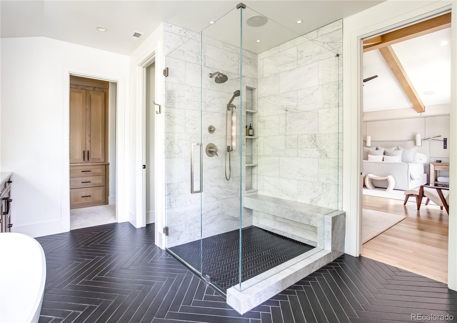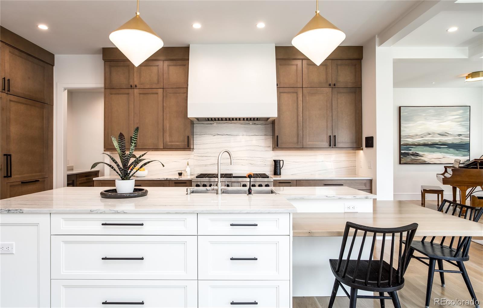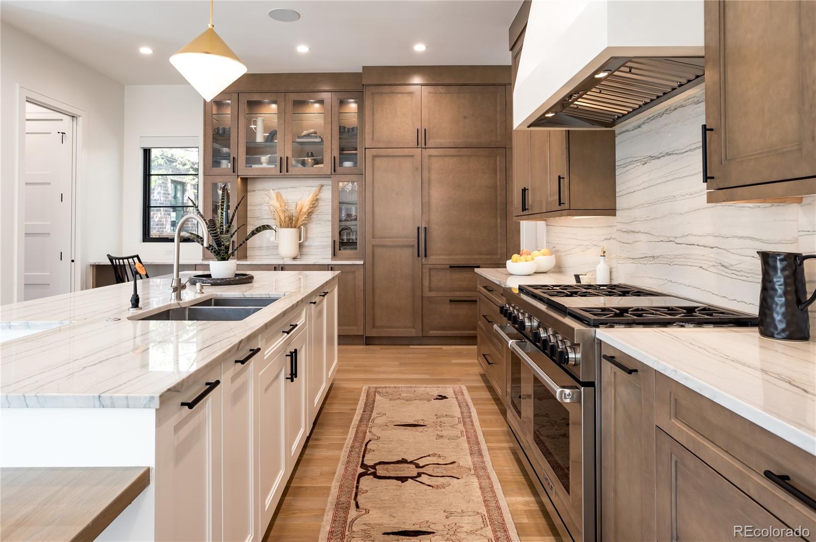 Timeless architecture and intricate details can be seen throughout this residence, unparalleled in its use of the finest materials & exquisite craftsmanship. Custom-built by Larsen Homes & designed by Studio Thomas, the open floorplan showcases high ceilings, 8-ft doors & large windows, allowing natural light to flood the interior. Beautifully outfitted with elegant crown molding, designer wallpaper, automatic up/down window shades & white oak floors. Main level study is highlighted by a built-in sofa, & expansive great room includes beamed ceilings, gas fireplace, built-ins + ample space for a piano. Well-equipped kitchen offers Wolf appliances including range with 6-burner gas cooktop, Venetian plaster hood, coffee bar, wine refrigerator, designated baking drawer fitted for a KitchenAid mixer, butler's pantry + walk-in pantry. With 2 sets of French doors to the expansive back patio featuring automatic pergola, gas fireplace & outdoor kitchen with built-in grill, the home lends itself to comfortable indoor/outdoor living. Accommodating 4 en suites & 5 gorgeous baths, including an impressive upper level primary suite comprised of beamed ceilings, Juliet balcony, 2 walk-in closets each with desk area + luxurious 5pc bath with heated floors. Laundry room, reading nook + 2 add'l en suites, each with full bath & walk-in closet, are found upstairs. A 4th en suite with 3/4 bath is located on the lower level, along with family & rec room, wet bar, exercise room, art studio & storage/mechanical. Not one detail was overlooked. The heated garage housing 3 cars incl. lift (6500 lb weight capacity) boasts epoxy flooring, custom cabinetry & slat wall + three 220 volt outlets. Premium surround sound & Lutron/Control4 home systems feature sound (incl. bath/shower), lighting, cameras, temperature & window shade control. Impeccably maintained & designed for unrivaled comfort + an extraordinary Denver lifestyle, just blocks to Wash Park and the shops & restaurants on South Gaylord.